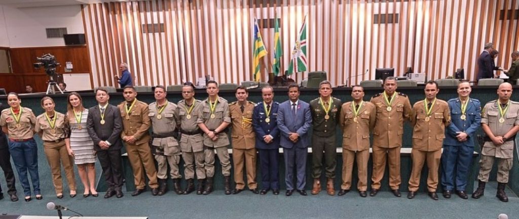 O deputado estadual Coronel Adailton realizou a entrega da medalha do Mérito legislativo Pedro Ludovico Teixeira á integrantes do Exército, Força Aérea, Polícia Militar e Corpo de Bombeiros, a premiação é um reconhecimento aos serviços prestados.